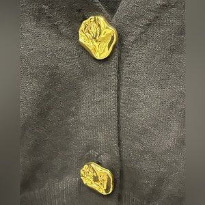 NWOT Women’s COMMENSE Black Cardigan with Unique Gold Nugget Buttons (Small)