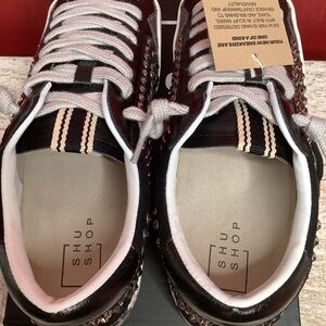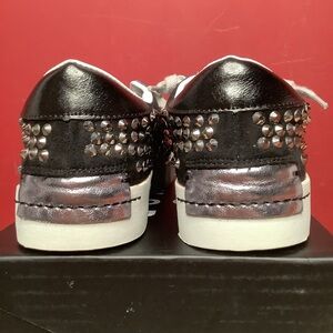 SHU SHOP NWT Sz 8 Ruby Studded Black Tie Sneakers Round Toes White Rubber Soles