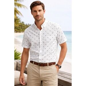 Crafted from 100% cotton, this shirt is lightweight, breathable, and perfect for summer, coastal, nautical, or preppy looks.