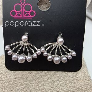 Paparazzi Silver Fan-Shaped Pearl Post Earrings (1082)
