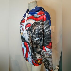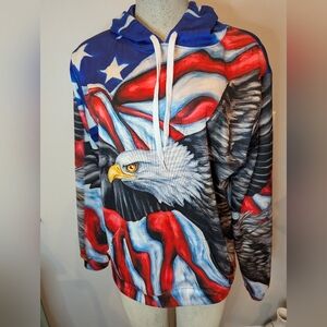 Americana Patriotic Eagle Hoodie with Stars and Stripes Size M Unisex