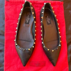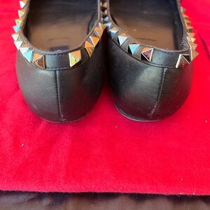 Valentino Garavani flat shoes in solid black genuine leather with silver studs, used in good condition. One Dust bag included 11”x 13”