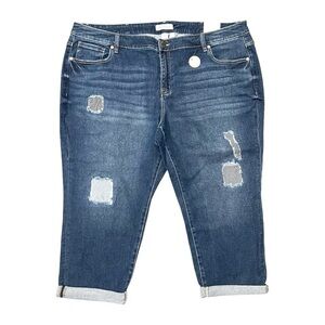 Lane Bryant Girlfriend Patch Mid Rise Plus Size Cropped Jeans Size 24