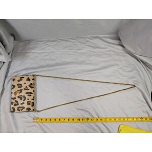 Coach Callie Foldover Chain Clutch Leopard Print Wallet Crossbody Brass Leather