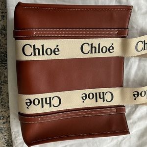 Chloe Brown Tote Bag with Cream Straps