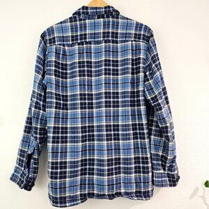 LL Bean Mens Sz Small Blue Plaid Fleece Lined Flannel Work Chore Heavy Button Down Shirt Jacket Shacket Unisex
