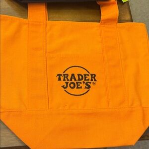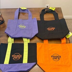 Set of four Trader Joe's reusable Mini tote bags in vibrant colors. Perfect for shopping and everyday use.