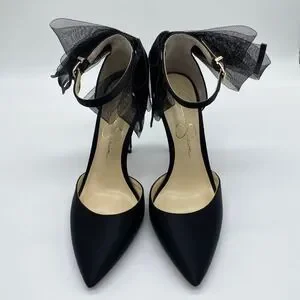 Jessica Simpson Size 6.5 Pumps D'Orsay Dress Heels Black Satin Stiletto Bows