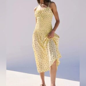 Effortlessly femme, this midi dress is featured in a soft cotton fabrication and sleeveless silhouette with flattering drop-waist detailing and a smocked bodice.