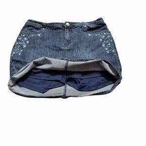 VTG Y2K EMBROIDERED DENIM MINI SKIRT WESTERN BOHO COTTAGECORE ATTACHED SHORT M L