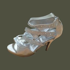 never worn. Shine with every step in these dazzling silver rhinestone heels. Perfect for adding a touch of sparkle to your ensemble.