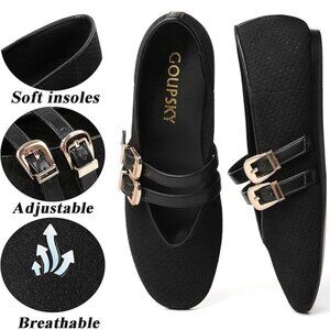 These Goupsky ballet flats blend premium suede with breathable mesh for lasting comfort and durability. An adjustable double-buckle strap provides a secure fit, while the soft cotton interior supports all-day wear. Finished with a classic ballet-inspired silhouette, they offer timeless, fashion-forward style.