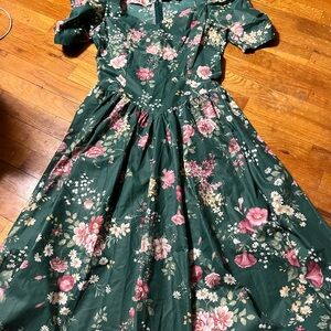 Vintage 80s Handmade Cottagecore Floral Green women’s Dress Puff sleeve
