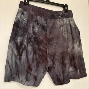 Large Fusion Threads Collective unisex drawstring shorts with pockets, in the hand-dyed Midnight colorway (dark blue with a hint of purple). Inseam is 6 inches. Fabric is a bamboo/hemp stretch jersey.