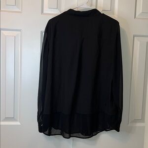 NWT Calvin Klein Black Button Down Blouse Roll Tab Sheer Sleeves Size XL
