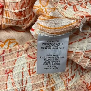 Stylish crop top featuring a vibrant floral print. This charming piece showcases a smocked bodice for a flattering and comfortable fit, short flutter sleeves adding a touch of femininity, a U-neckline, and a cropped length. The summery pattern will elevate any outfit. Please see all photos for any flaws or conditions. A110