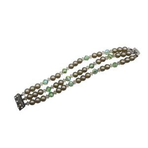 Vintage Faux Pearl Green Crystal Bracelet Rhinestone Box Clasp MCM 1940s-1950s