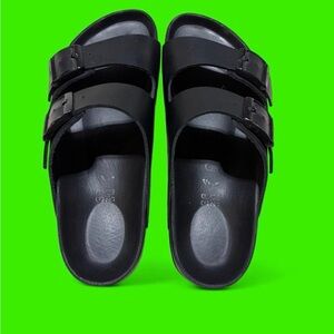 Chic black sandals with adjustable straps. Elevated platform for added style. Ideal for everyday comfort.