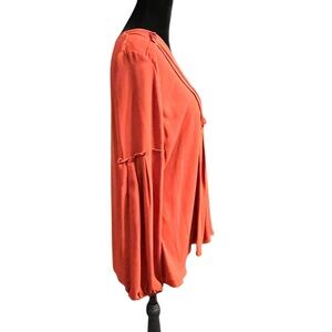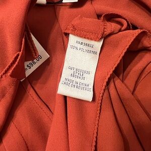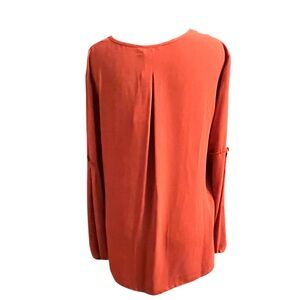 Bright orange blouse with elegant pleats. Stylish and comfortable for any event.