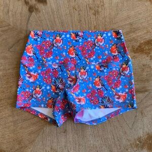 Peachy athletic snowy songbirds shorts, size medium, extra peachy fit (3.5” inseam, high-rise), 77% polyester / 23% spandex fabric, excellent condition. Great for working out & training - crossfit, HIIT, aerobics, yoga, boxing, zumba, running, biking, rowing, power lifting, weight lifting, etc!