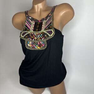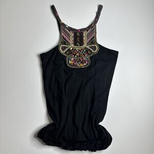Twentyone Beaded Embroidered Festival Tank Top S Boho Tribal Y2K Gypsy USA
