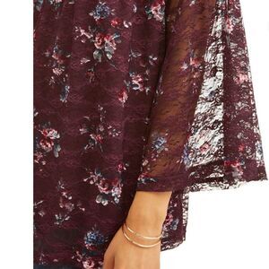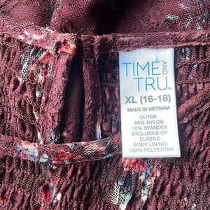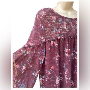 XL 16-18 Time&Tru Peasant smocking lace yoke,bell sleeves light Floral Burgundy