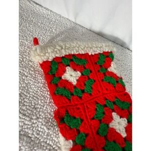 VTG Hand Crocheted Christmas Stockings Red Green White Holly Star Motif Set of 2