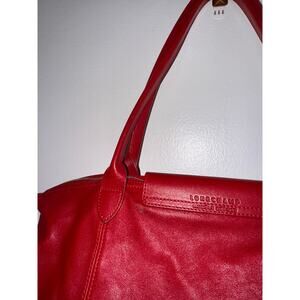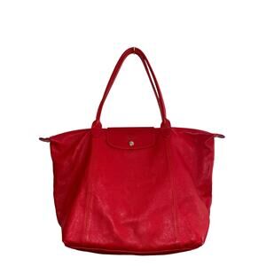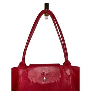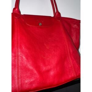 LONGCHAMP Leather Tote Le Pliage Vibrant Red Long Handles Shoulder Bag FRANCE