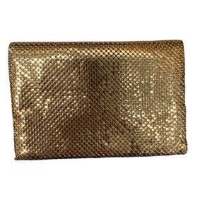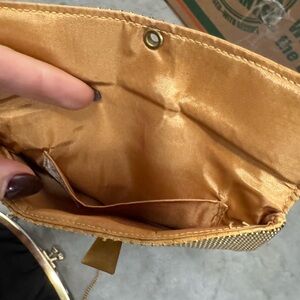 Elegant gold clutch bag perfect for evening events. Features a shimmering design that adds a touch of glamour to any outfit. 6x4 measurements