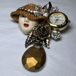 Bonetto Brooch Pin Watch Women 22mm Gold Tone Face Fashion Bling Untested 1920's