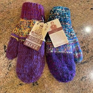 NEW! Andes Gifts Handmade Multi-Color Lined Mittens NWT. Beautifully made. No two pair alike! Super Warm. Tagged with artist name and photo.