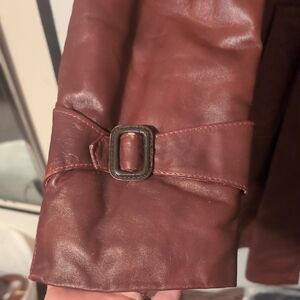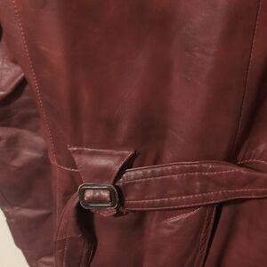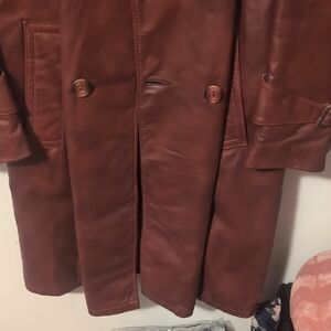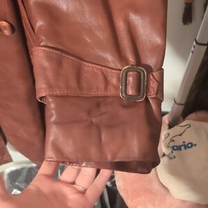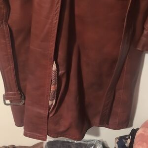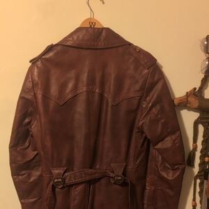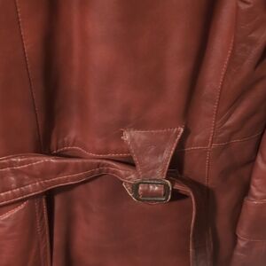 Elevate your style with this classic brown leather trench coat. Perfect for any occasion, this coat offers both sophistication and comfort. #70s #90s