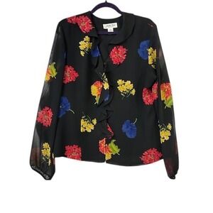 Judith Hart Collection Blouse 14 Vintage Y2K Floral Black Ruffle Top Coquette