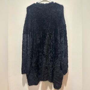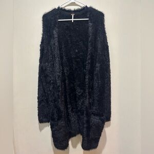 Free People Faux Fur Cardigan Sweater in Black, Women’s Size Large