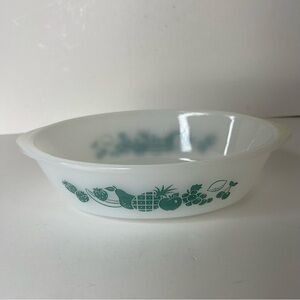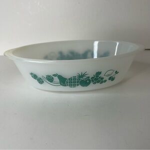 Vintage Glasbake J235 10" Turquioise Fruit Pattern Oval Casserole