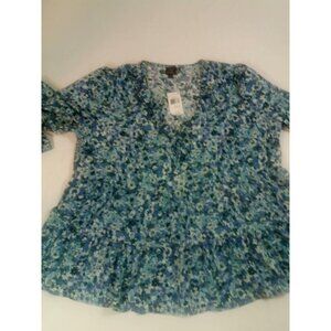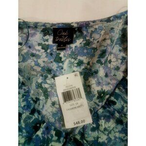 Oak Trellis Womens 3X Blue Floral Long Sleeve V-Neck Tunic Top New
