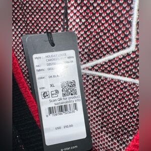 G-Star Raw Holiday Loose Knitted Cardigan in black with a red and white star design.