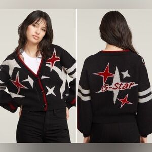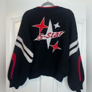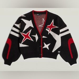 G-STAR RAW Wool Blend Loose Knitted Cardigan Sweater W/Stars Women’s Size XL NWT