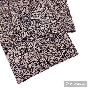 Talbots Perfect Crop Pants, Size 8. Colora: Dark navy on cream/light tan background. Paisley floral print 98% cotton, 2% spandex.