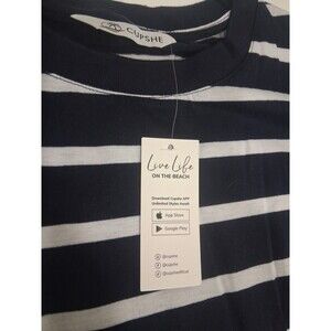 Cupshe Simply Me Striped Midi Dress Cinch Waist Large White Navy Beachwear