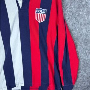 VTG Ralph Lauren Rugby Polo K Swiss Shirt Large Red Blue Block Stadium RLPC 90s