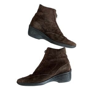 AQUATALIA by Marvin K Womens 6 Zip Front Wedge Weatherproof Brown Quilted Look Suede Boots