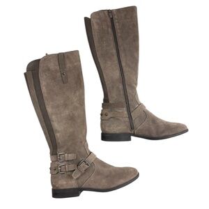 Marc Fisher Gray Suede Leather Buckle Knee High Moto Roding Boots 7.5