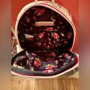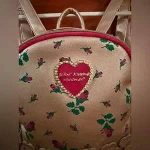 Betsey Johnson Cream Floral Heart Mini Backpack