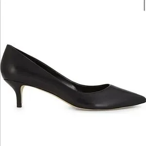 A pointy toe stiletto silhouette and low kitten heel exude a dress-up work wear and special occasion styling, without adding height.