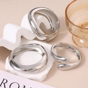 Chunky Cuff Bracelets Set Elevate your look with these bold yet minimalist open cuff bracelets. Featuring an irregular boho coil design and high-shine finish, they're perfect for stacking or solo wear. Adds instant edge to
