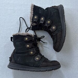 Sorel Boots Explorer Joan winter black suede lace up warm Women’s size 7.5
