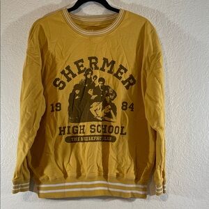 This sweatshirt captures the iconic spirit of "The Breakfast Club" with its vintage Shermer High School design from 1984. Made from a comfortable cotton-polyester blend, it's perfect for fans of the classic film. The yellow color and ribbed cuffs add a retro touch to your casual wardrobe.