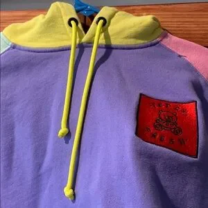 Teddy Fresh Colorblock Hoodie Sweatshirt mint, pink, violet and chartreuse szM