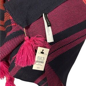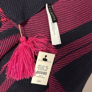 Talbots Pink and Black Plaid Scarf Wool Tassel Accents New